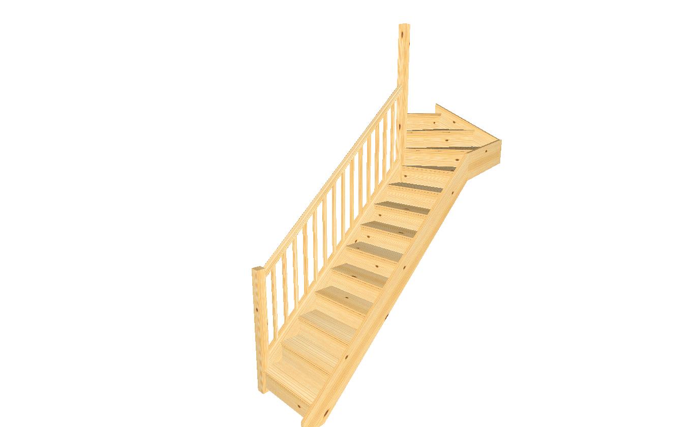 Refurbishments and new builds seeking a made-to-measure wooden staircase with a compact left-hand top winder and a complete pine balustrade—durable, installer-friendly and easy to finish.