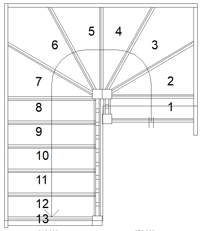 S1W3W35N – Left-Hand Double Winder Staircase (With Handrails) – Trade Range