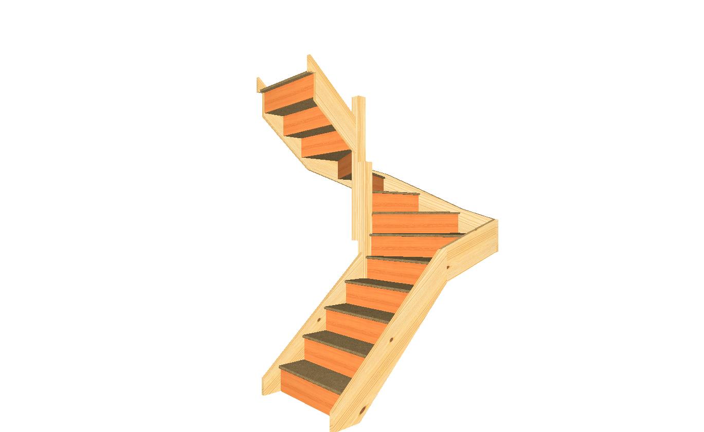 This version turns to the left as you ascend and is supplied without handrails, making it ideal for staircases positioned between walls or where balustrade components will be fitted separately.