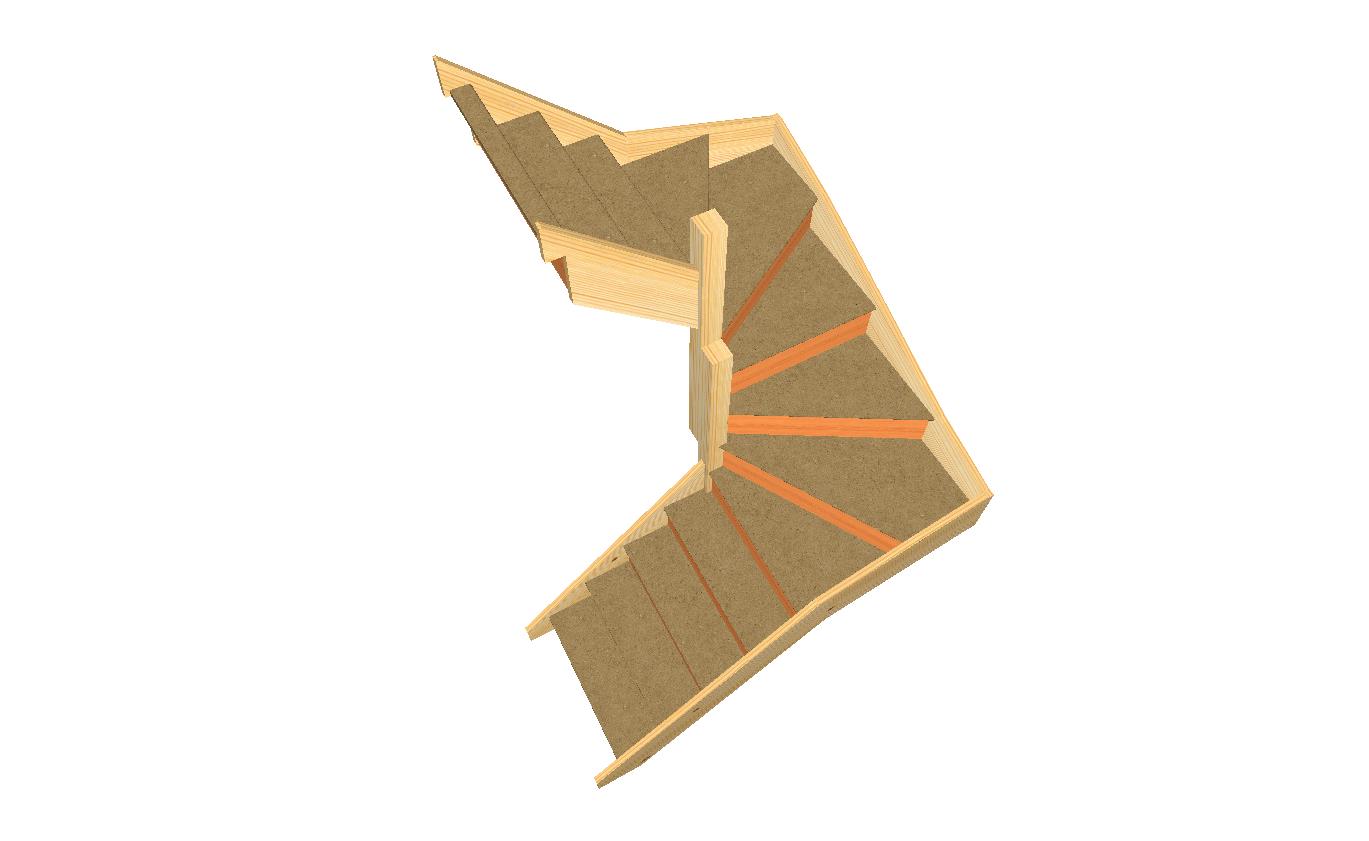 The S4W3W32N Left-Hand winder staircase is a Trade Range solution intended for installations where a longer approach to the winder is required. With four goings before the turn and two goings after, this configuration shifts the winder section further into the stair run, making it well suited to certain compact floor plans.
