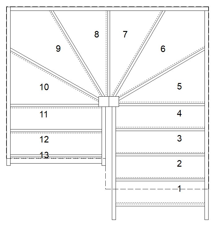 To ensure the recommended 2.0m headroom, the stairwell opening will need to be formed as an L-shaped opening, following the direction of the stair as it turns. This allows the required clearance to be maintained above the winder section.