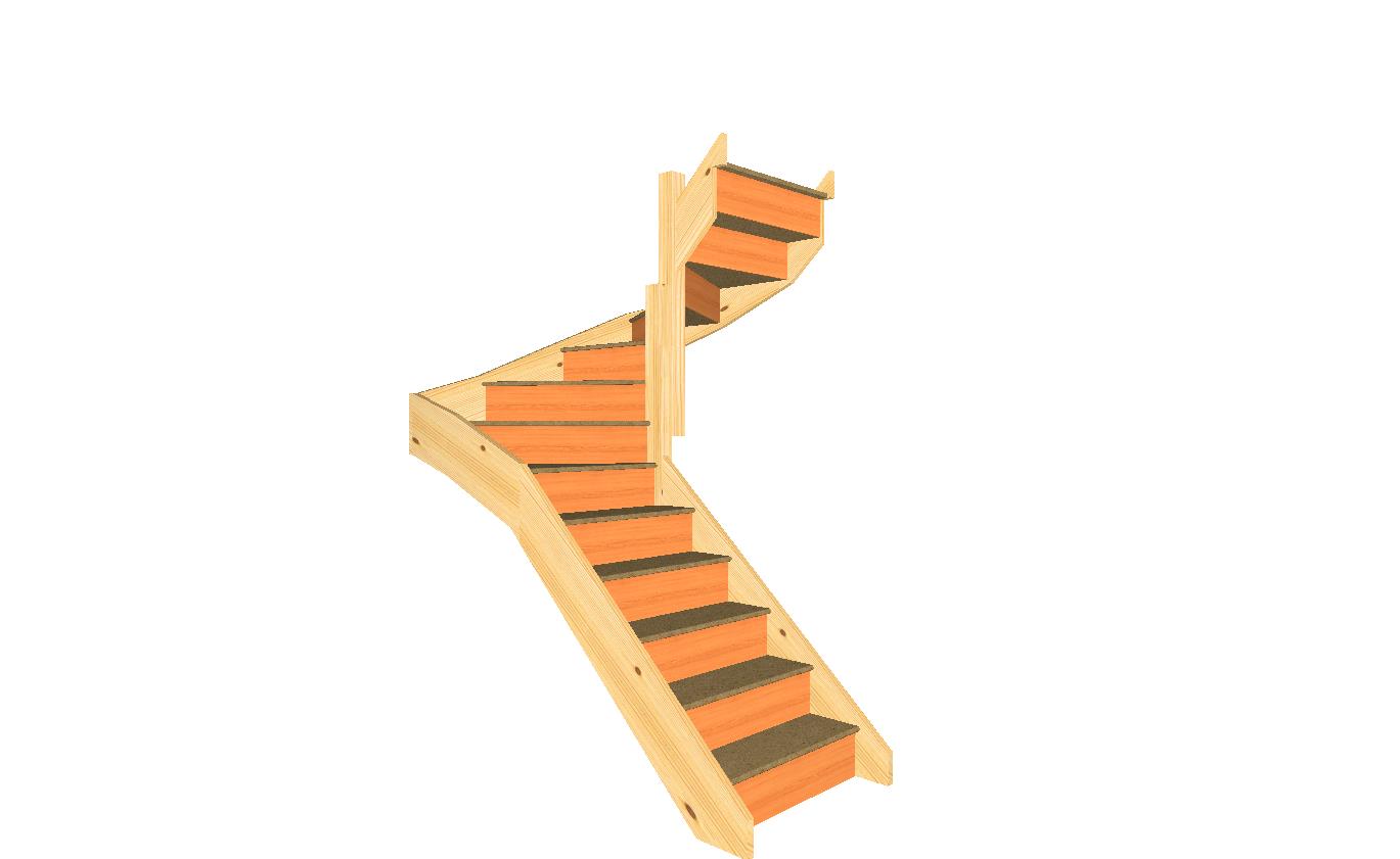 Turning to the right as you ascend, this version is supplied without handrails, making it ideal for staircases fitted between walls or where balustrade components will be installed separately.