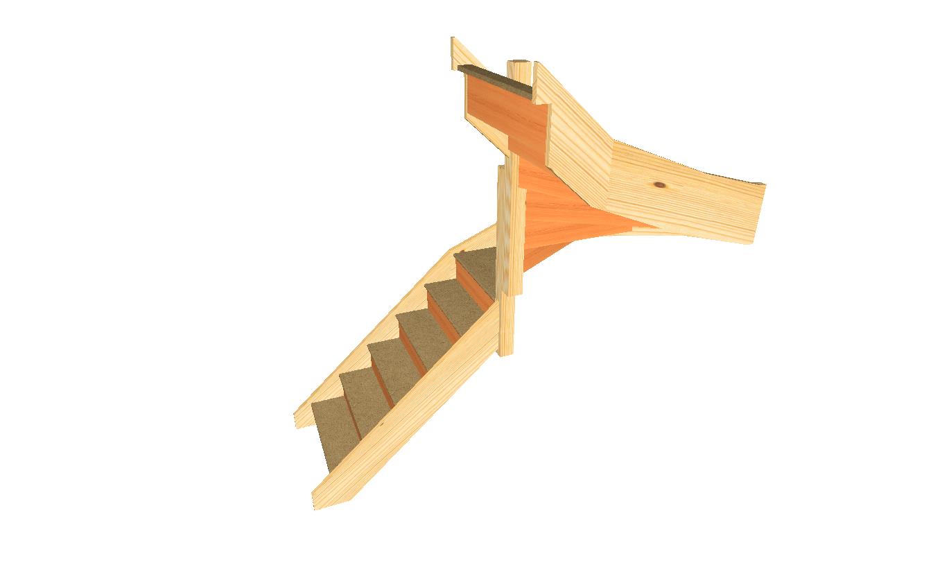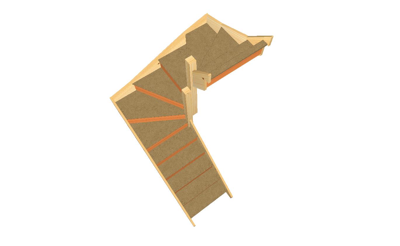 The S5W3W31N Right-Hand staircase is the most compact winding staircase layout within the Trade Range. By concentrating the direction change into the winder section, using five winder treads before the turn and one after, this layout allows the stair to reverse direction within an extremely limited footprint.