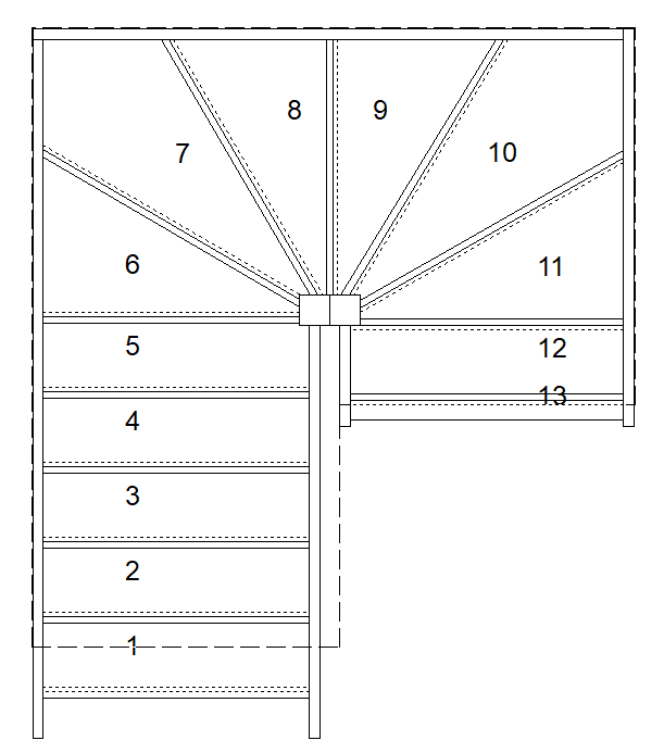 This additional opening length provides clearance above the winder treads, where headroom is most restricted. The stairwell opening should therefore be planned early in the design stage.